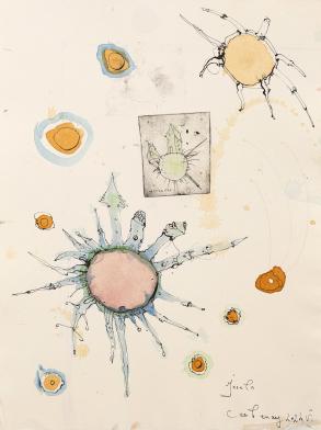 Zeichnung und Radierung auf Büttenpapier