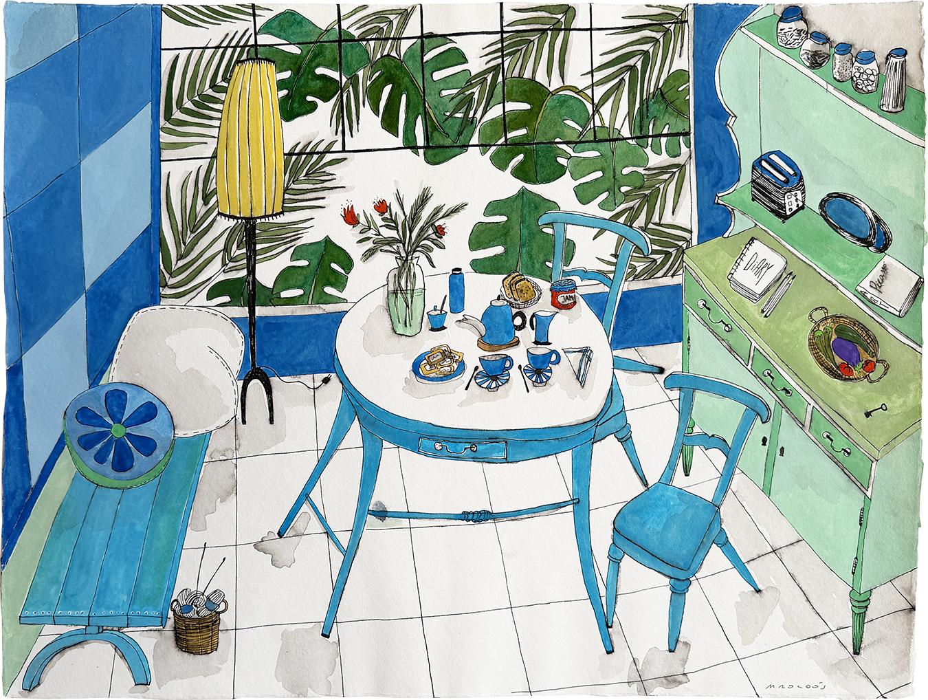 Breakfast in blue with window plants (61.4.7)